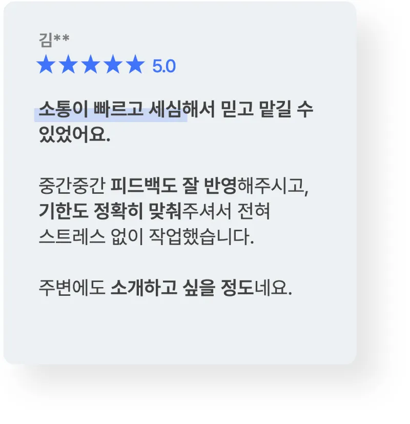 1차 시안 또는 중간 결과물을 공유드리며, 피드백을 반영해 수정합니다.